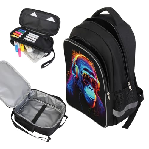 More information about 3 Pcs Kids Backpack, 3D Reflective Cartoon, 600D Polyester & Dual Zippers, 17" Bookbag with Ergonomic Design for boys & girls age 6-18, Gorilla Space Style for school Children Kids