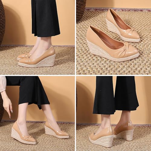 Aceptolcom Women's Closed Toe Wedges Pumps Comfort Casual Pointed Toe Slip On Wedge Espadrilles Platform Heels Dress Shoes for Party Work Evening 6