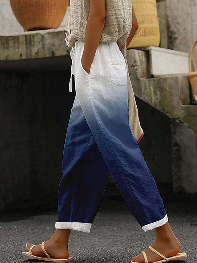HOT ! Women's Cotton Linen Pants Pants Trousers Lightweight Casual Full Length Mid Rise Color Block Pocket Drawstring Breathability Comfortable Inelastic Casual Daily Weekend Azure Pink Summer Spring