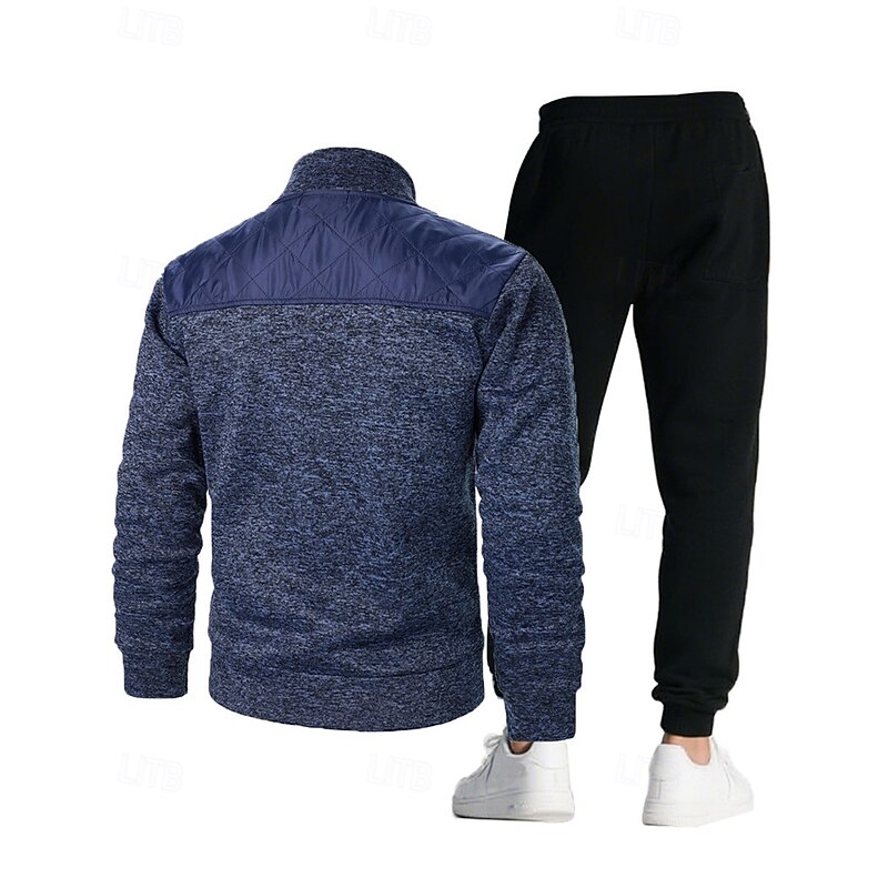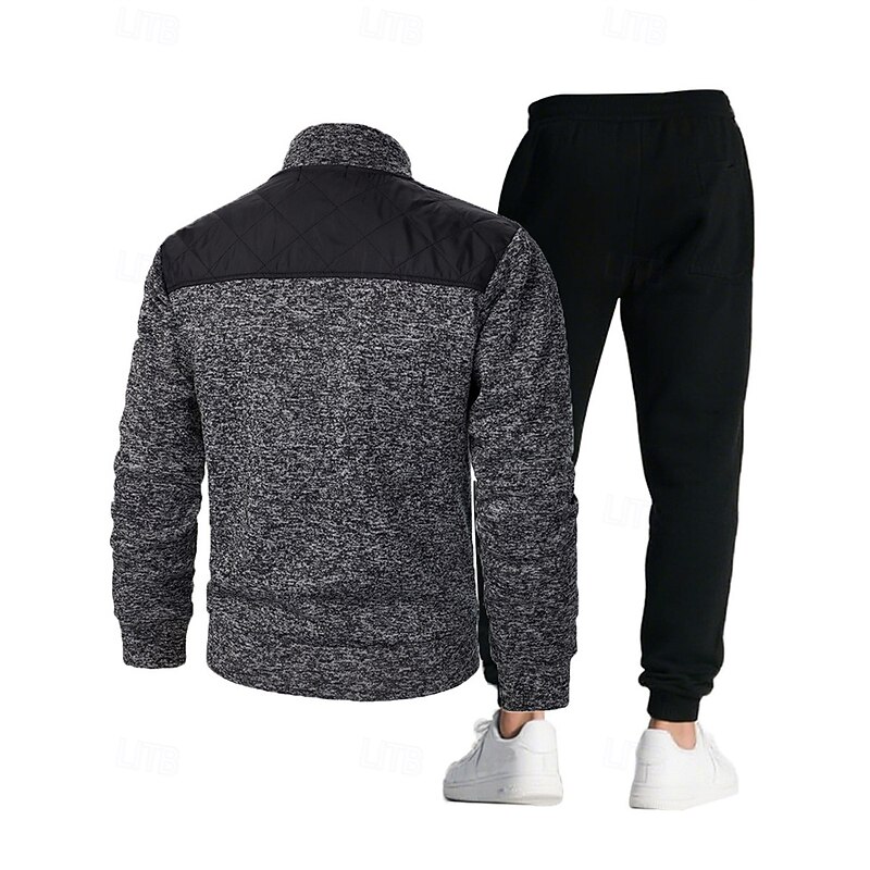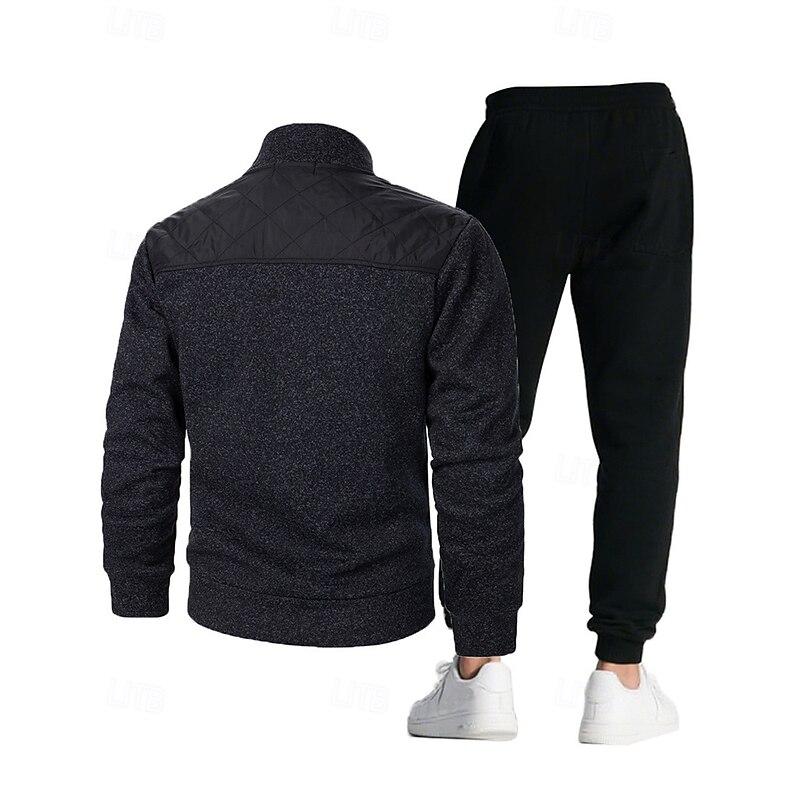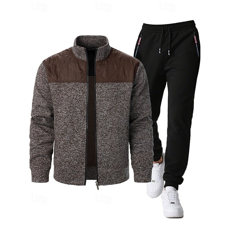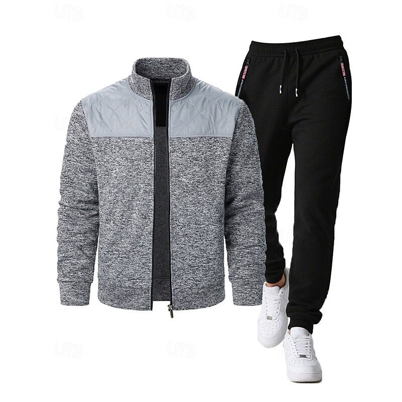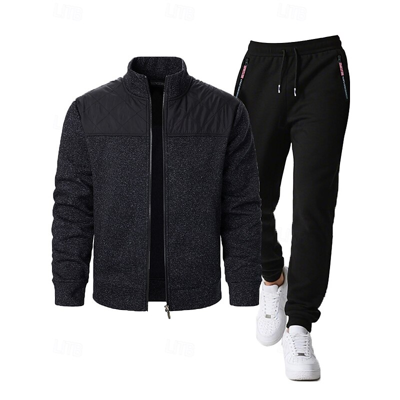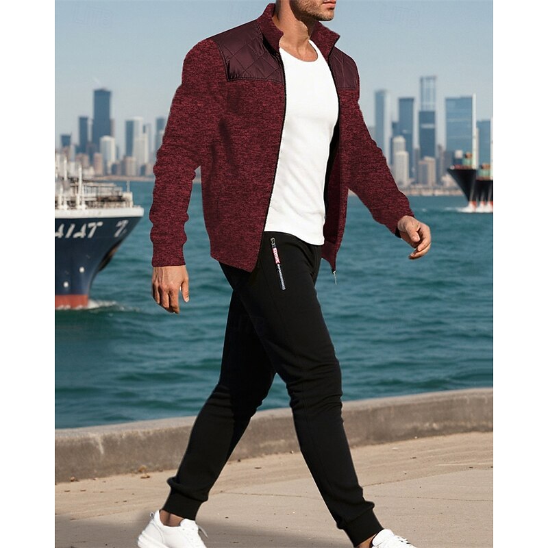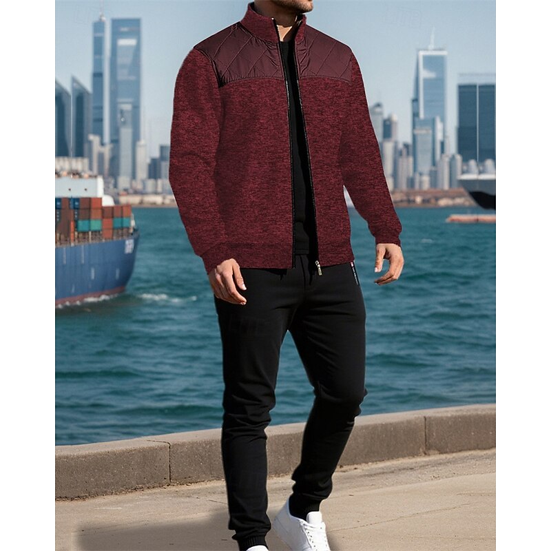 More information about Men's Casual Jacket Set Vacation Daily Breathability Pocket 2 Piece Spring Fall Color Block Fashion Classic Stand Collar Regular Black Wine Navy Blue Light Grey Dark Gray Jacket