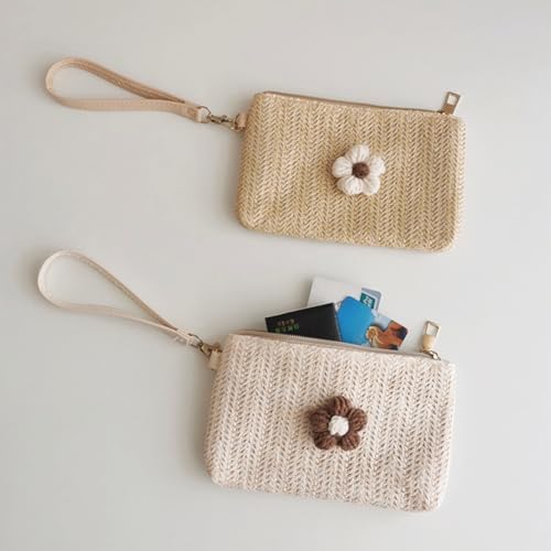 2023 Wristlet Wallet Women Girl Credit Card Card Holder with Wrist Strap Straw Woven Coin Change Purse 5