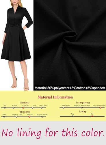 • Style: Collared V neckline, 3/4 sleeves, A Concealed Back Zipper; Pleated detail, two Handy Pockets; Decorative buttons with only top four buttons can be unbutton; A-line silhouette helps to hide body imperfections, Unmovable Belt with Bowknot design.