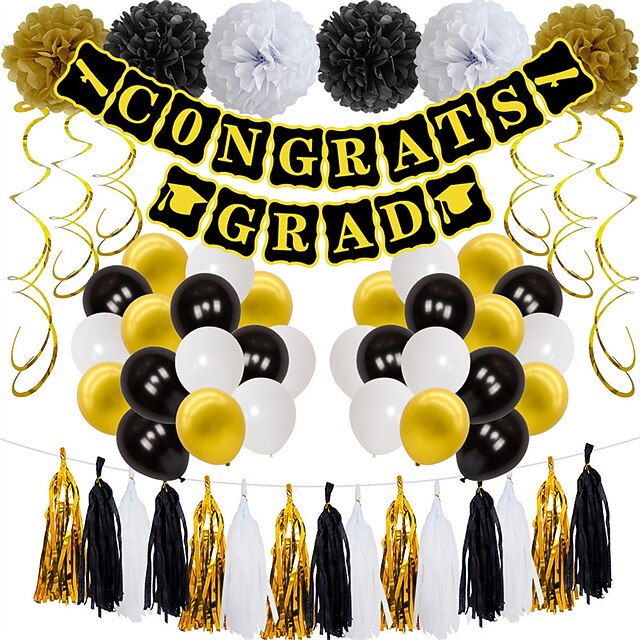 HOT ! Graduation Ceremony Balloon Set Congrats Blue and White Graduation Season Pull Flag 10 Inch Latex Balloon Set