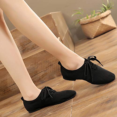 HOT ! JUODVMP Canvas Lace-up Dance Shoes Flat Practice Jazz Dancing Boots for Women,Model MFGDBJSX