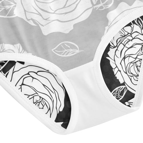 Toddler Underwear Custom 2t Cotton Panties for Girl Pattern Briefs Underpants White Roses Black