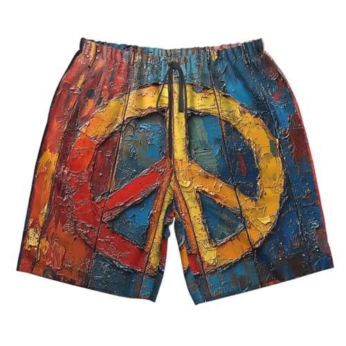 HOT ! Men Swim Trunks Beach Shorts Swimwear Summer Bathing Suits - Rainbow Peace Love Sign