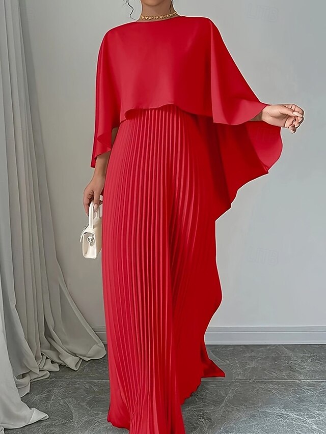 Women's Long Dress Maxi Dress Casual Dress Fashion Batwing Sleeve Outdoor Party Holiday Regular Fit Plain Long Sleeve Crew Neck Black Red Beige Summer 1