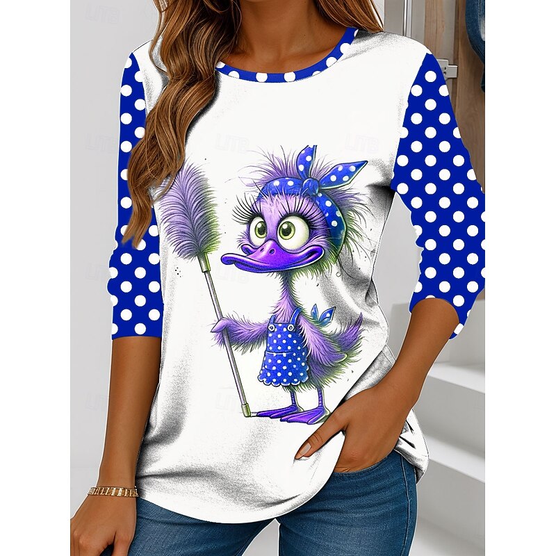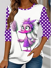 More information about Women's T Shirt Graphic Cartoon Polka Dot Vintage Stylish Classic Long Sleeve Crew Neck Regular Tops Daily Print Red Blue Purple Green Spring Fall Winter