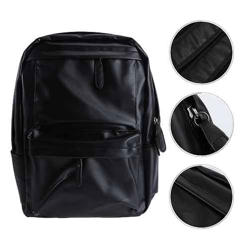 POPETPOP Stylish Solid Color PU Leather Backpack for Men Durable Travel Bag with Vintage Design for Shopping and Outdoor Activities Versatile Rucksack for All Ages Black 5