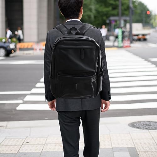 POPETPOP Stylish Solid Color PU Leather Backpack for Men Durable Travel Bag with Vintage Design for Shopping and Outdoor Activities Versatile Rucksack for All Ages Black 6