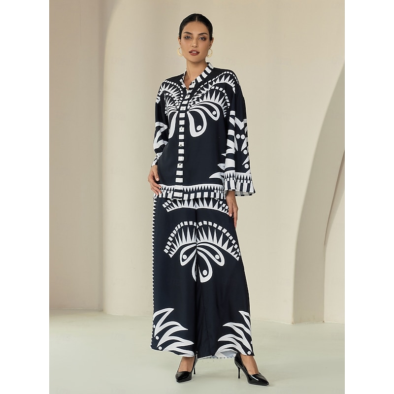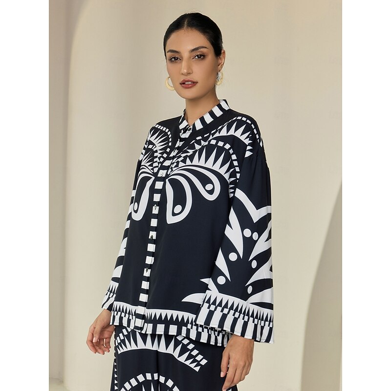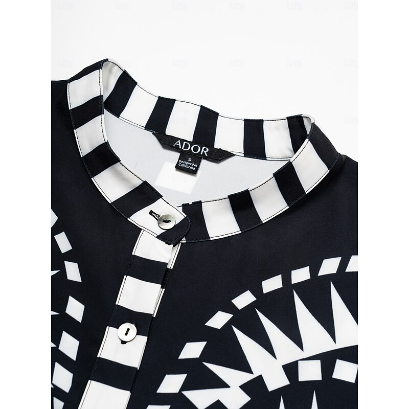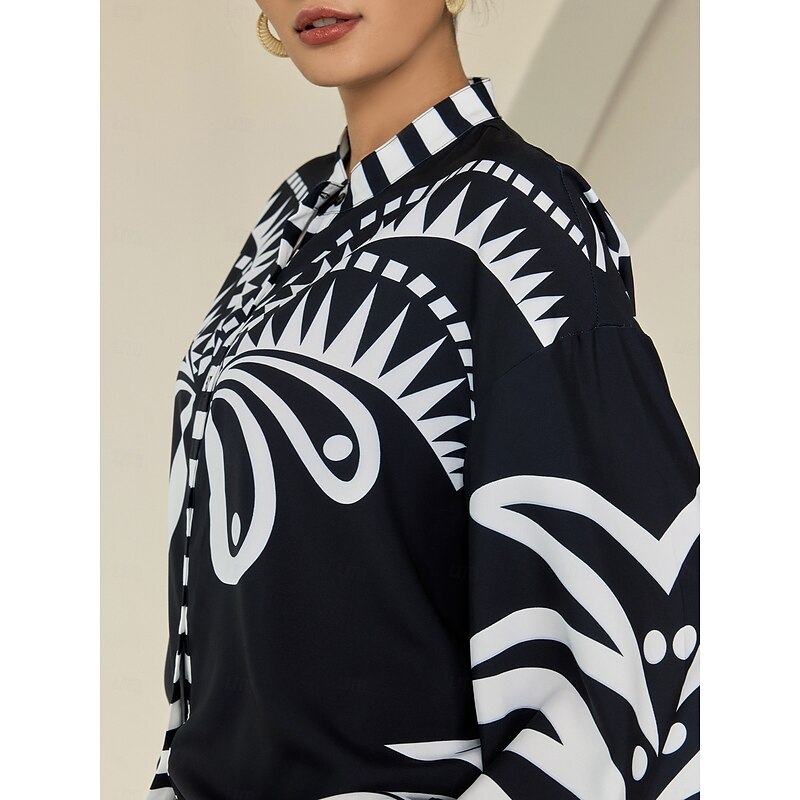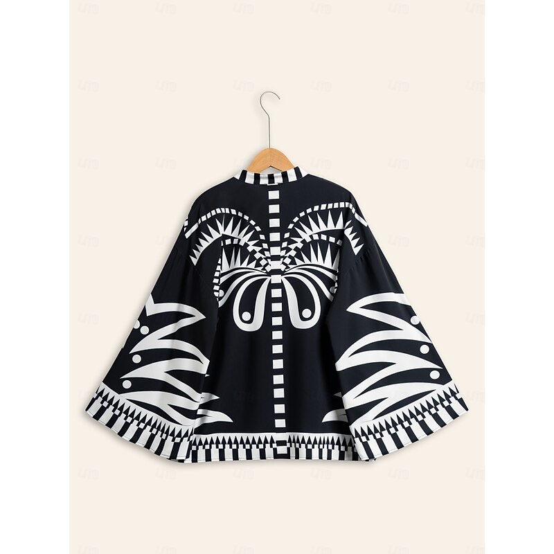 More information about Women's Blouse Black High Neck Satin Geometric Flare Cuff Sleeve Casual Daily Vacation Spring Fall