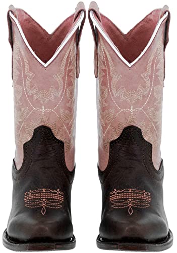 Why Choose Girls Kids Pink Dark Brown Stitched Leather Cowgirl Boots Snip Toe?