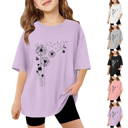 Girls Short Sleeve Graphic Tee Toddler Floral Dandelion Print Crew Neck Shirt Loose Fit Casual Kids Summer Tops Blouses 5
