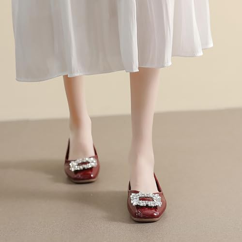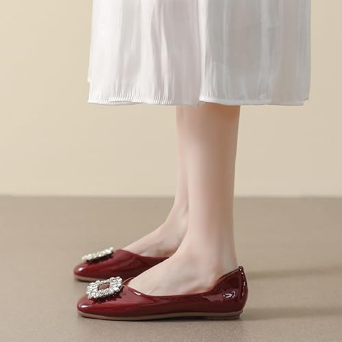 Women‘s Rhinestones Patent Leather Ballet Flats Fashion Comfort Square Toe Slip On Dress Shoes for Party Evening Prom Wedding Walking Shoe 5