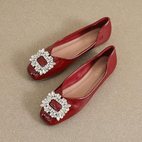 Women‘s Rhinestones Patent Leather Ballet Flats Fashion Comfort Square Toe Slip On Dress Shoes for Party Evening Prom Wedding Walking Shoe 6