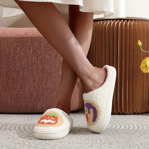 • 【Fun Halloween Design】: These adorable cookie slippers feature a charming pumpkin lantern embroidery print, adding a festive touch to your Halloween celebrations.