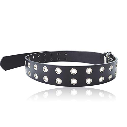 Why Choose Double Eyelet Grommet Leather Buckle Belt Black Waistband 1.57 Inch Fashion Belt for Men for Women Adjustable, S?