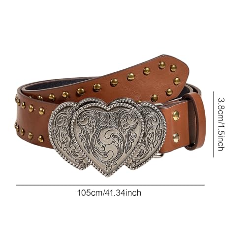 Waist Belt Buckle Belt 3.8cm Wide PU Leather Vintage Fashion Jewelry Gifts for Women for Party Jeans Pants Disco Dancing, Brown 3