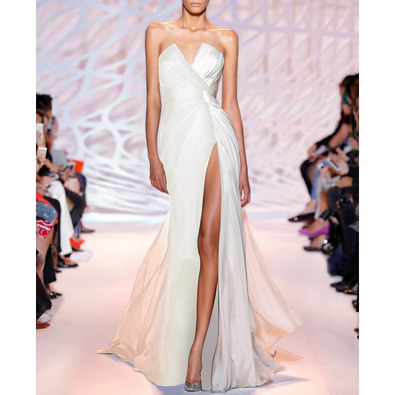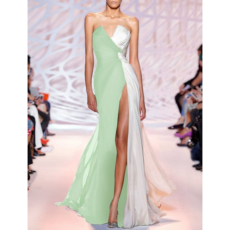 More information about Sheath Black Dress Evening Gown Color Block Dress Wedding Guest Party Wear Sweep / Brush Train Sleeveless Strapless with Slit dress to impress