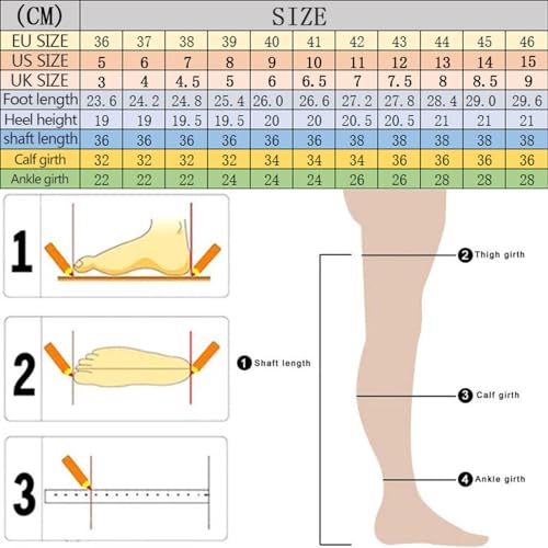 • NOTE:Handmade custom shoes, if your legs are too thick or too thin, you can measure your ankle circumference, calf circumference, thigh circumference, as well as your desired tube height (cm), we can be tailored according to your size for you!