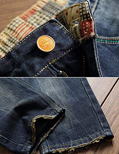 Ylingjun Mens Ripped Distressed Straight Cut Slim Fit Jeans 7