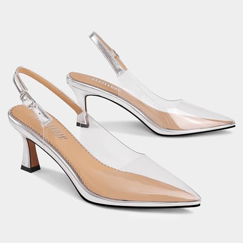 Multicolour Clear Heels for Women Pointed Closed Toe Slingback Kitten Heel Pumps Comfortable Dress Sandals 1