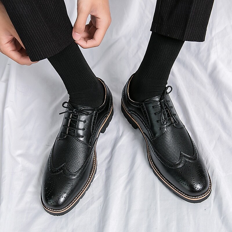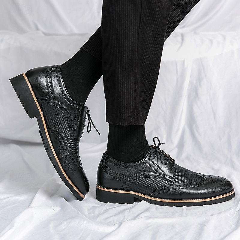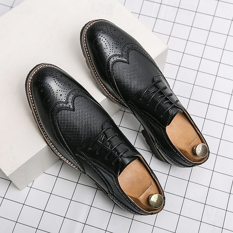 Men's Brown Brogue Shoes with Chunky Sole, Classic Lace-Up Design, Casual Style for Outdoor and Everyday Wear 24