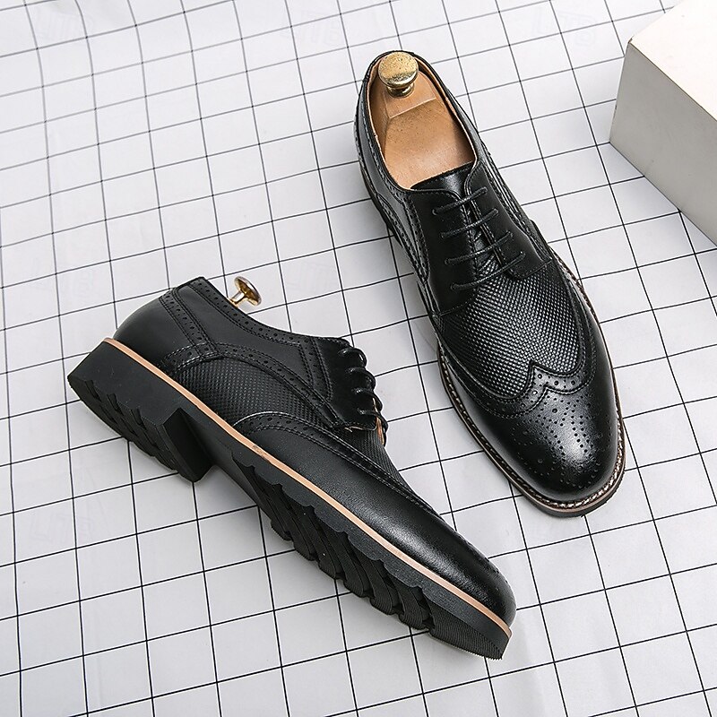 HOT ! Men's Brown Brogue Shoes with Chunky Sole, Classic Lace-Up Design, Casual Style for Outdoor and Everyday Wear