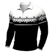 More information about Men's Graphic Western Wear Polo Long Sleeve Polo Shirts Casual Western Style Outdoor Daily Wear 3D Print Quarter Zip Polo Spring Fall Winter Black Blue Brown