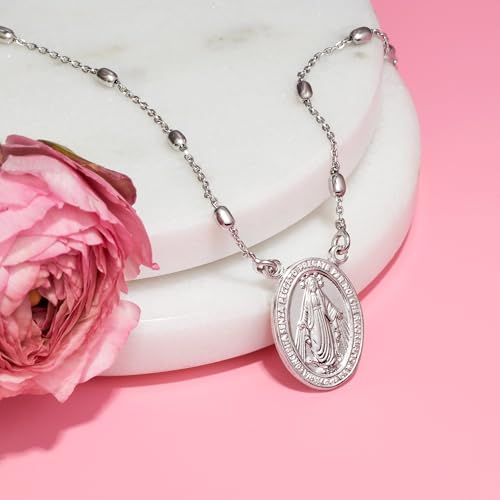 HOT ! Ross-Simons Italian Sterling Silver Miraculous Medal Bead Station Necklace