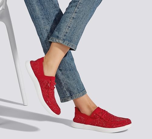 HOT ! BELOS Women's Rhinestone Lace Up Loafers Shoes Comfortable Slip On Mesh Knit Walking Shoes Fashion Lightweight Sparkly Glitter Sneaker