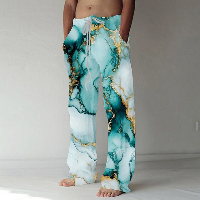 More information about Men's Marble Abstract Art Trousers Baggy Pants Casual Pants Mid Waist Casual Vacation Holiday Beach Wear Drawstring Elastic Waist Wide Leg Summer Spring 3D Print Black Yellow Green