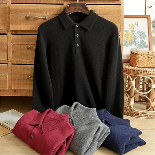 • Men's winter cashmere sweater with button T-shirt collar, perfect for business casual looks.
