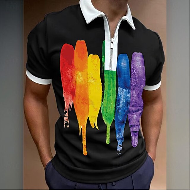 HOT ! Men's Splash Ink Zip Polo Short Sleeve Turndown Casual Daily Outdoor Dailywear Athleisure Zipper Summer White Black