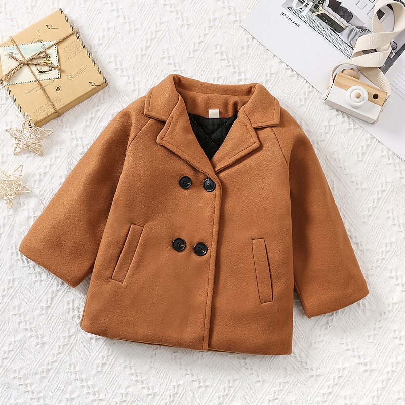 More information about Boys' 3D Plain Woolen Coat Long Sleeve Fall Winter Active Basic Kids 2-6 Years Daily Regular Fit