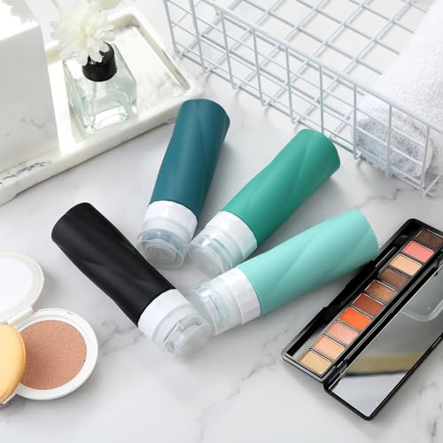 HOT ! Gemice Travel Bottles - 3oz TSA Approved Containers, BPA Free, Leak Proof, Squeezable Silicone, Clear Toiletry Bag (4 Pack)