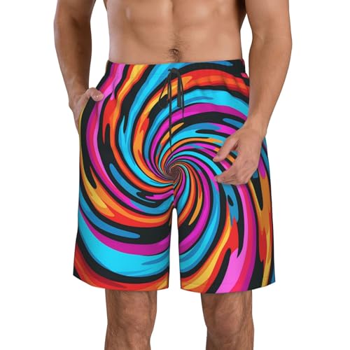HOT ! Spiral Trippy Illusion Psychedelic Colorful Mens Swim Trunks Swim Board for Teen Shorts Surf Swimming Beach Trunks Medium