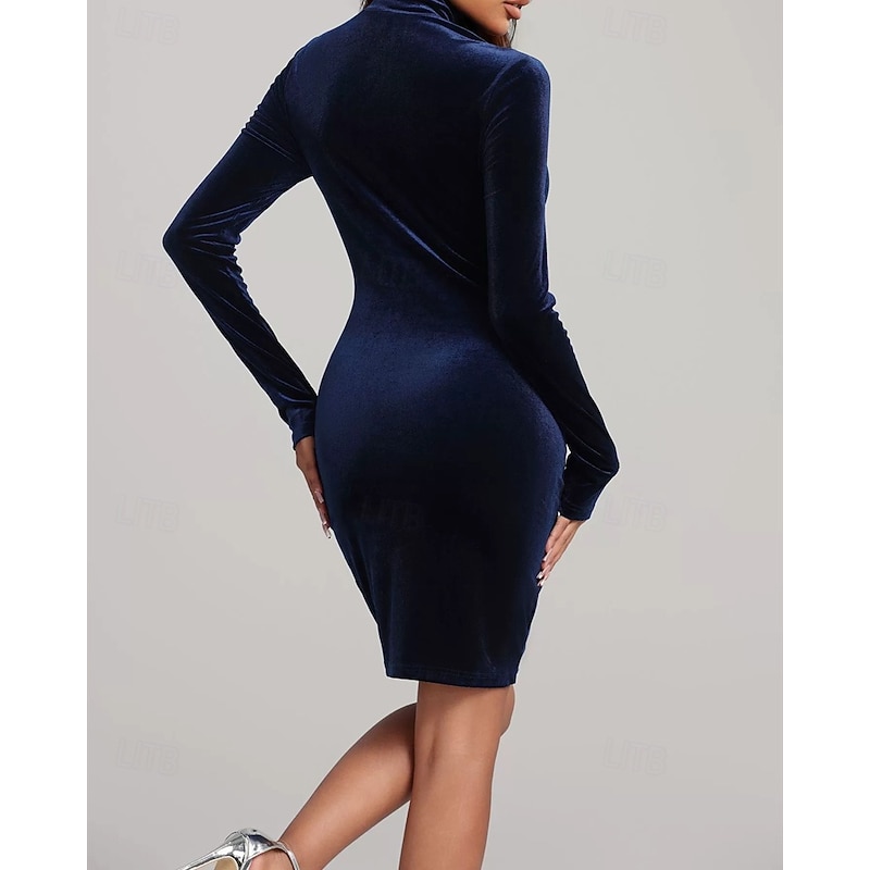 HOT ! Women's Midi Dress Velvet Dress Cocktail Dress Elegant Fashion Modern Outdoor Party Party Evening Wear Slim Plain Long Sleeve High Neck Dark Blue Spring Autumn