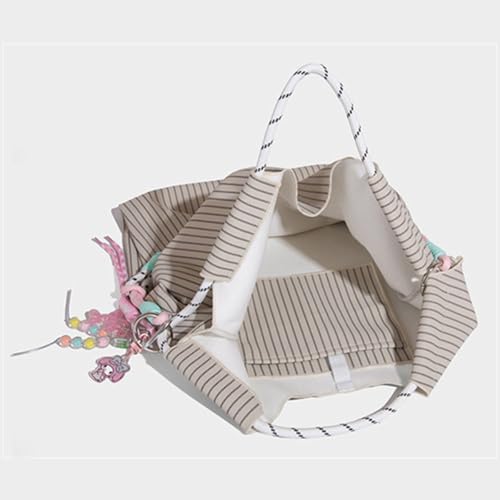 HOT ! Women's Drawstring Striped Casual Shoulder Bag,Large Capacity Vegan Leather Purse,Top Rope Handle Tote for Work Daily