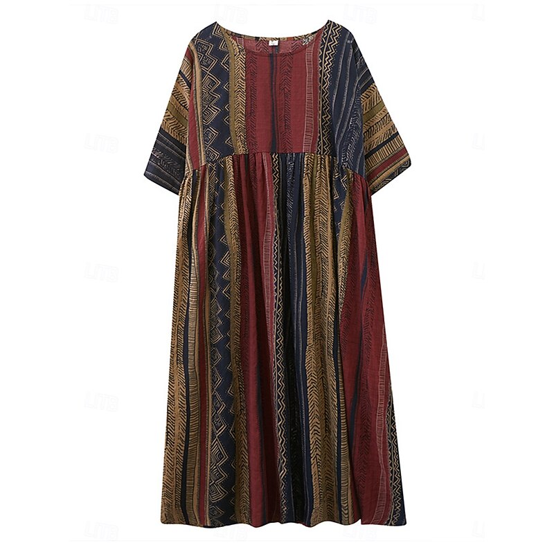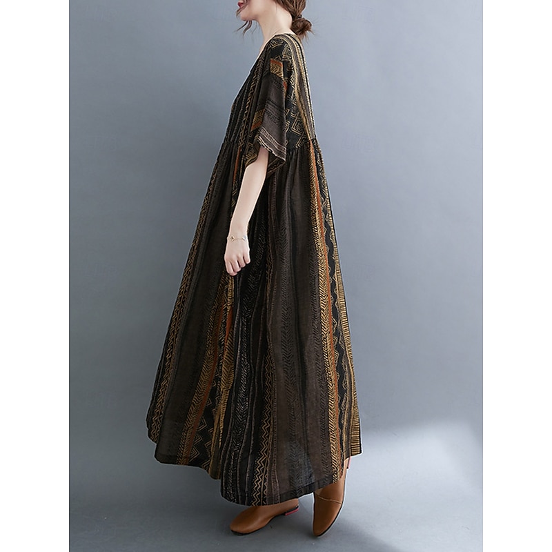 More information about Women's Maxi Dress Cotton Linen Dresses Casual Dress Basic Casual Vacation Daily Regular Fit Graphic Short Sleeve Crew Neck Dark Brown Burgundy Summer