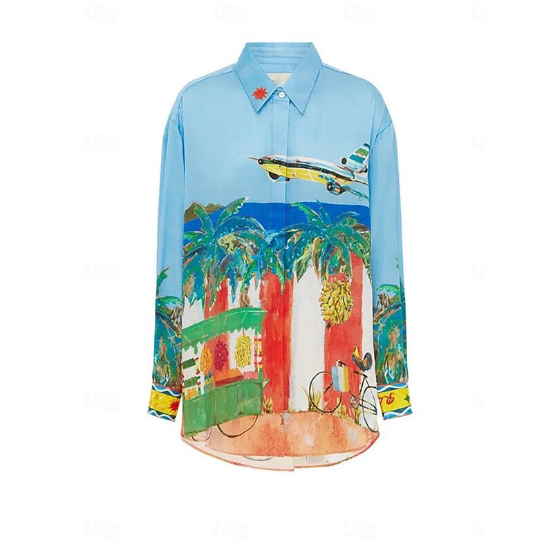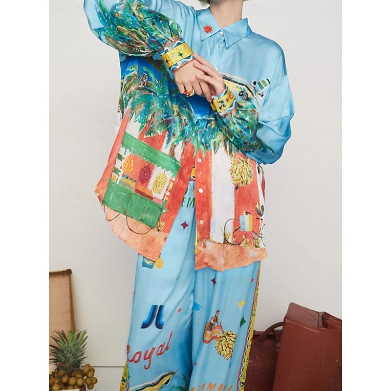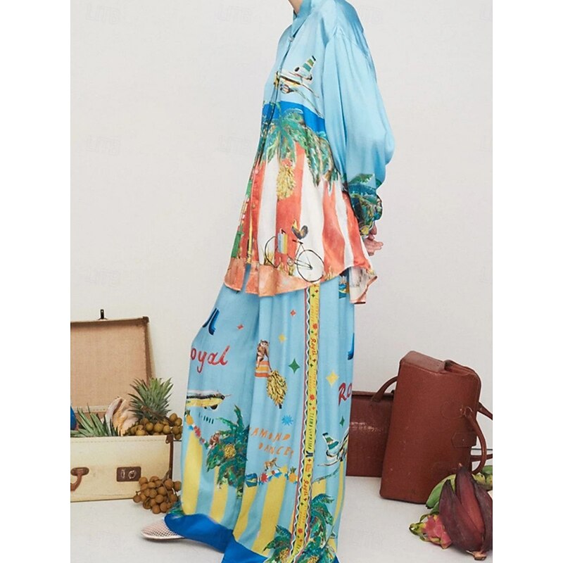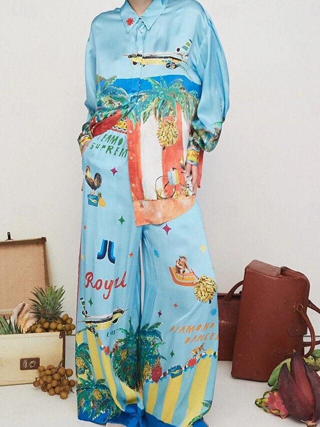 More information about Women's Fashion Streetwear Daily Shirt Blouse Wide Leg Pants Long Sleeve Shirt Collar Graphic Print Casual Daily Blue Fall Regular Fit
