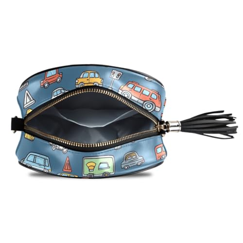 ALAZA Women's Traffic Signs Cartoon Transportation Cars PU Leather Crossbody Bag Shoulder Purse with Tassel 5