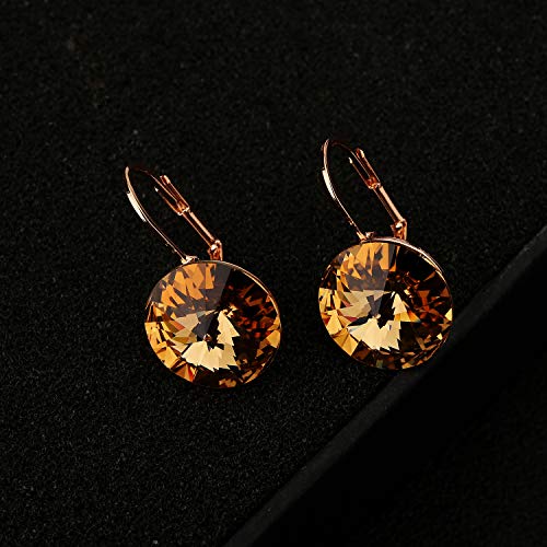 Austrian Crystal Round Drop Earrings for Women 14K Gold Plated Hypoallergenic Leverback Hoop Earrings 6