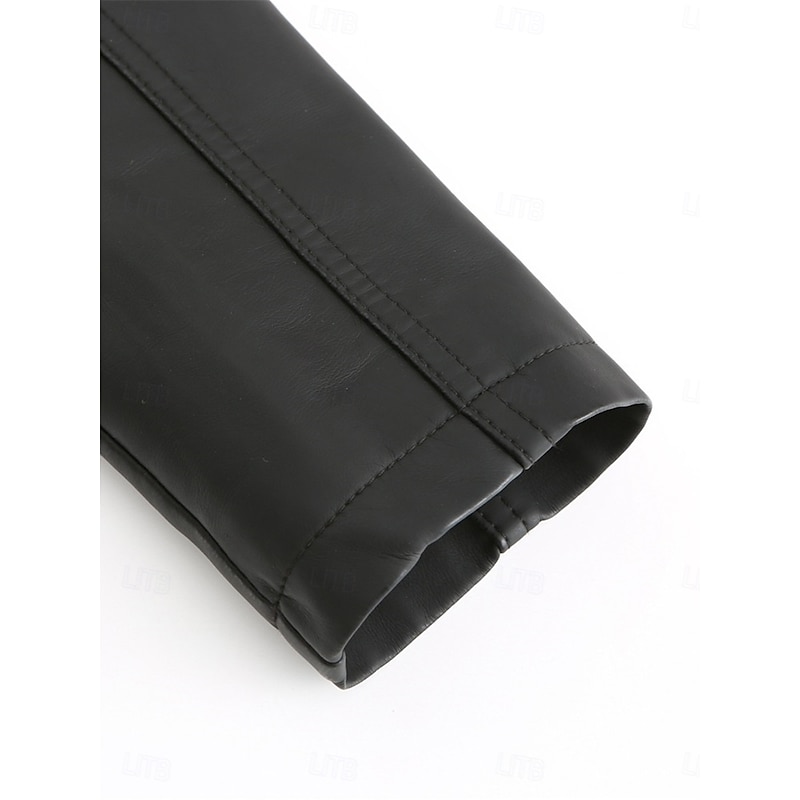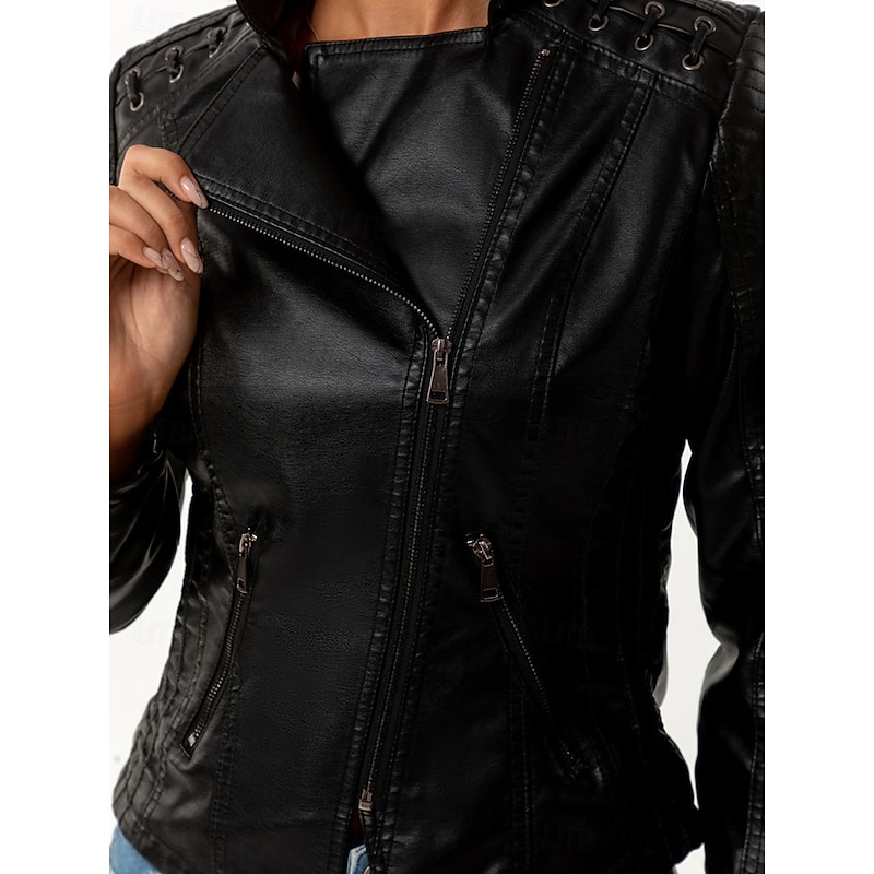 More information about Women's Faux Leather Jacket Outdoor Street Daily Wear Fall Winter Short Coat Regular Fit Thermal Warm Breathable Stylish Casual Jacket Long Sleeve Plain with Pockets Full Zip Black Pink Red