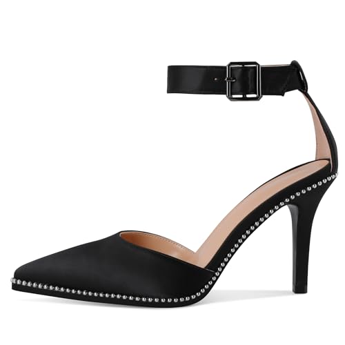 HOT ! Soireelady Womens High Heels Beaded Pumps Stiletto Ankle Strap Heels Pointed Toe D'Orsay Heel Dress Shoes Satin 3.5 Inch