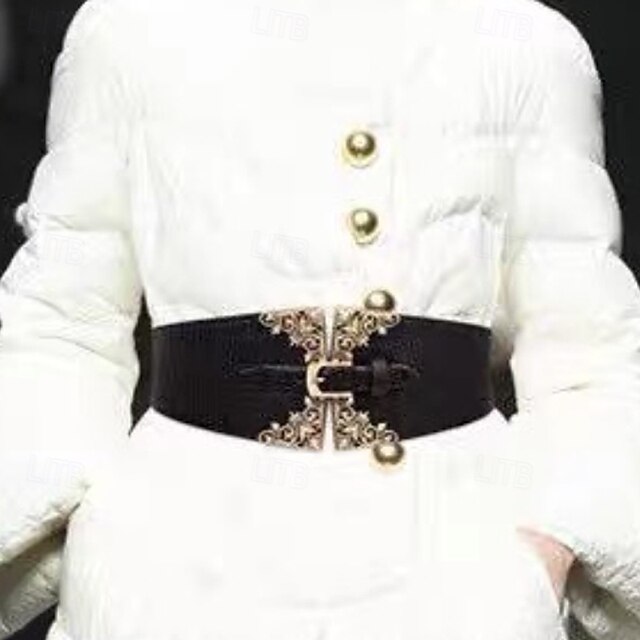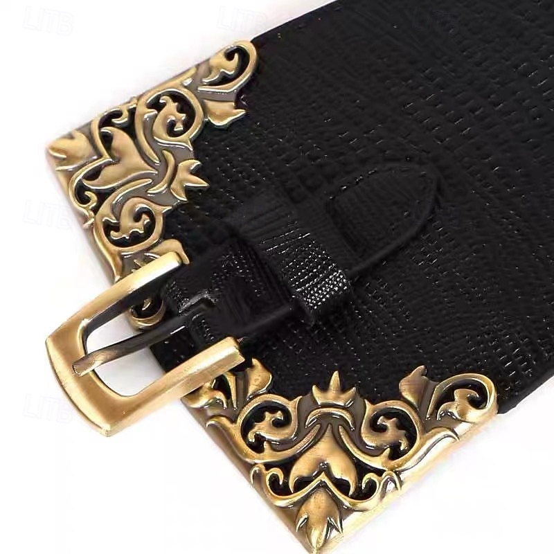 Women's Belt PU Black Wide Belt Daily Weekend Floral 1