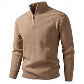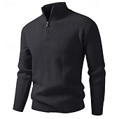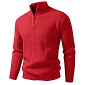 More information about Men's Sweater Pullover Ribbed Knit Regular Tops Knitted Plain High Neck Vacation Fashion Business Casual Clothing Apparel Spring & Fall Black Red M L XL