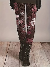 More information about Women's Pants Trousers Leggings Cozy Leggings Streetwear Casual Full Length High Waist Floral Elastic Waist Print Breathability Comfortable Stretchy Vacation Street Daily Wear Wine Green Spring Fall