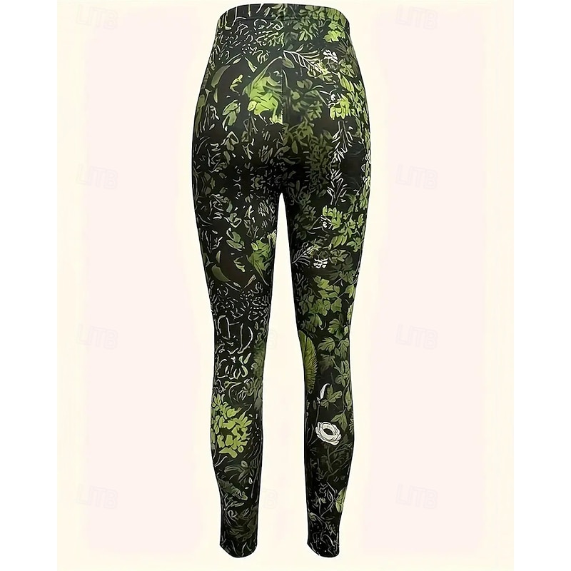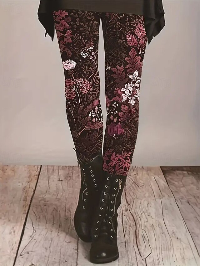 HOT ! Women's Pants Trousers Leggings Cozy Leggings Streetwear Casual Full Length High Waist Floral Elastic Waist Print Breathability Comfortable Stretchy Vacation Street Daily Wear Wine Green Spring Fall