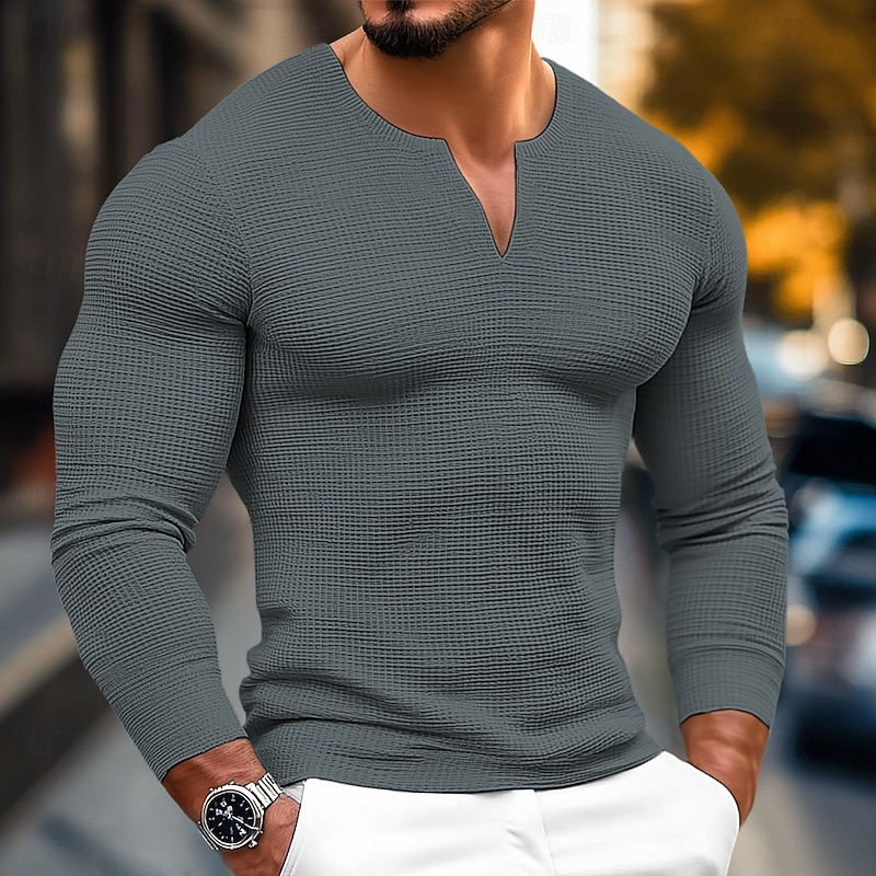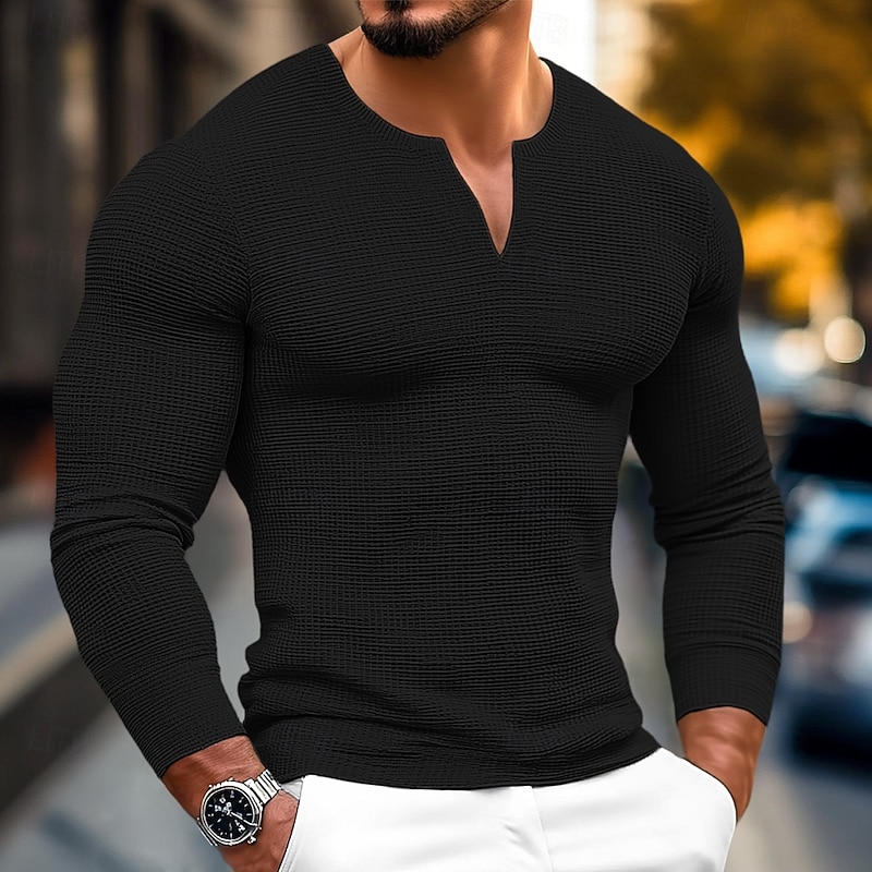 More information about Men's Waffle Shirt T Shirt Tee Top Long Sleeve Shirt Long Sleeve V Neck Spring & Fall Plain Fashion Designer Basic V Neck Vacation Street Going out Black White Gray Top Tee for Men